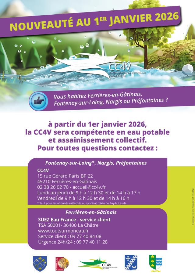 Au 1er janvier découvrez vos nouveaux correspondants pour l’eau potable et l’assainissement Informations Écrit le 28 novembre 2025