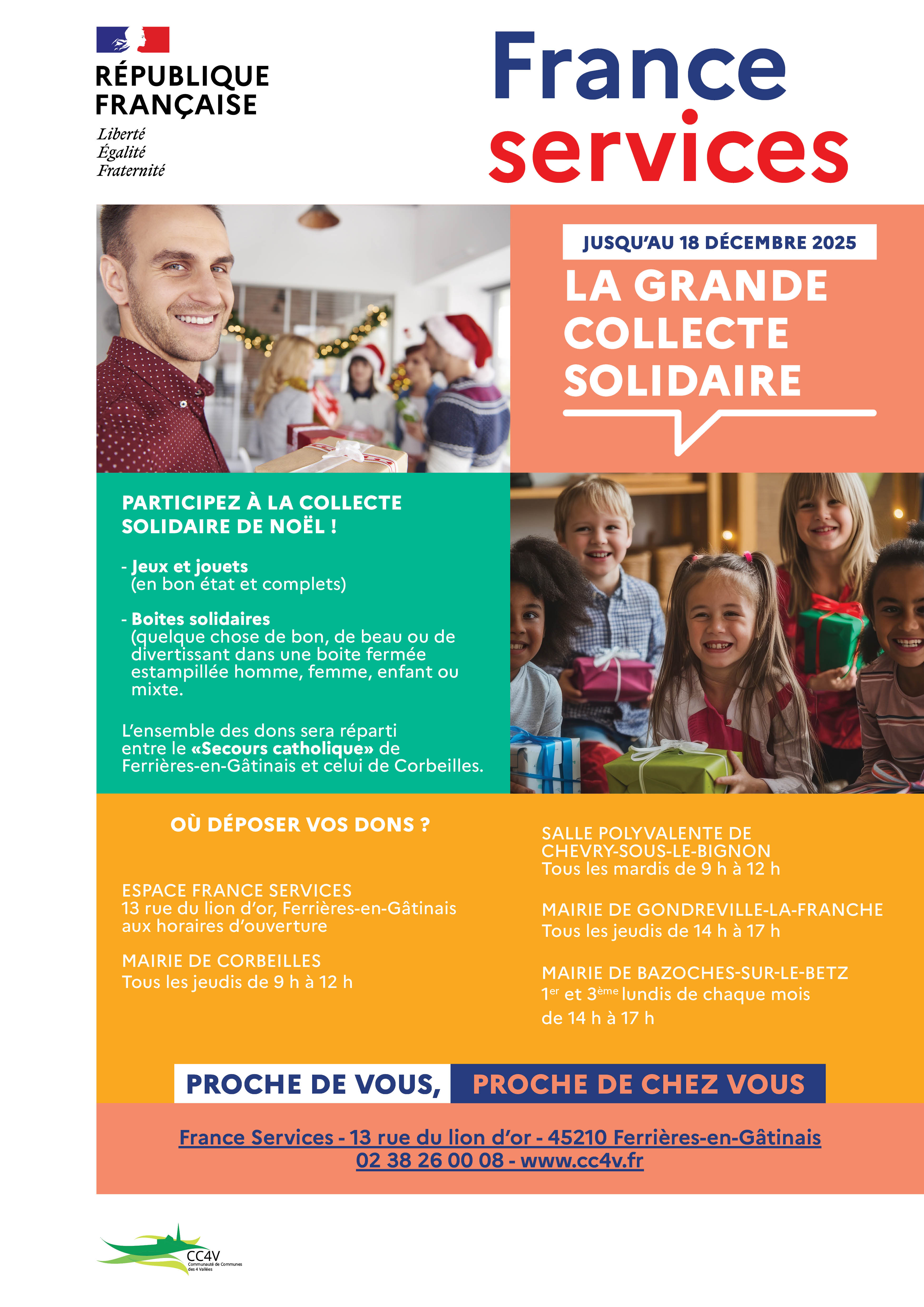 L'agenda Du 01 avril au 31 décembre Agenda des sorties de la CC4V Découvrez en 1 seul clic tous les événements autour de vous Du 14 novembre au 18 décembre Grande collecte solidaire de Noël France Services 04 décembre Ma retraite, j'en profite ! Spectacle - Forum 18 décembre Conseil communautaire Affichage Filtrer les événements Période Aujourd'hui Cette semaine Ce mois Autre Par thématiques Anniversaire Santé Foire Théâtre Solidarité et social Patrimoine Musique Manifestations sportives et compétitions Jeunes publics Inauguration Hommage Exposition Associations Danse Culture Concert Commémoration Cinéma Cérémonie Brocantes et vide-greniers Ateliers et stages Visite de la ville Thématiques Transverses Ado Association Entreprise Famille Jeune actif Nouvel arrivant Parent Senior Filtrer les événenements Réinitialiser