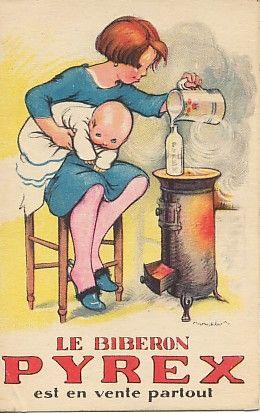 Les biberons en verre, généralisés depuis le XVIIIe siècle résistent mal aux hautes températures qui permettent d’éliminer les germes. L’invention du biberon en verre pyrex est donc une véritable révolution dans le domaine car il est résistant aux chocs thermiques.